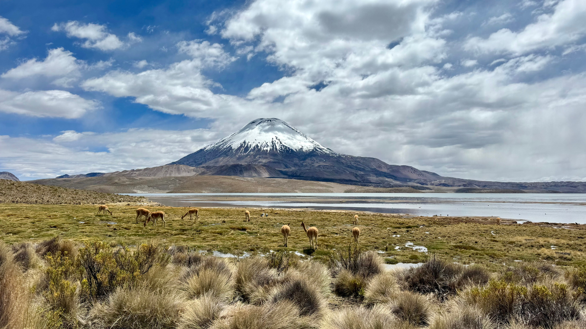 Picture this – a snow-capped volcano overlooking a large lake with wild vicuñas grazing peacefully in the foreground. This is Lauca National Park and incredibly, no one else is here.