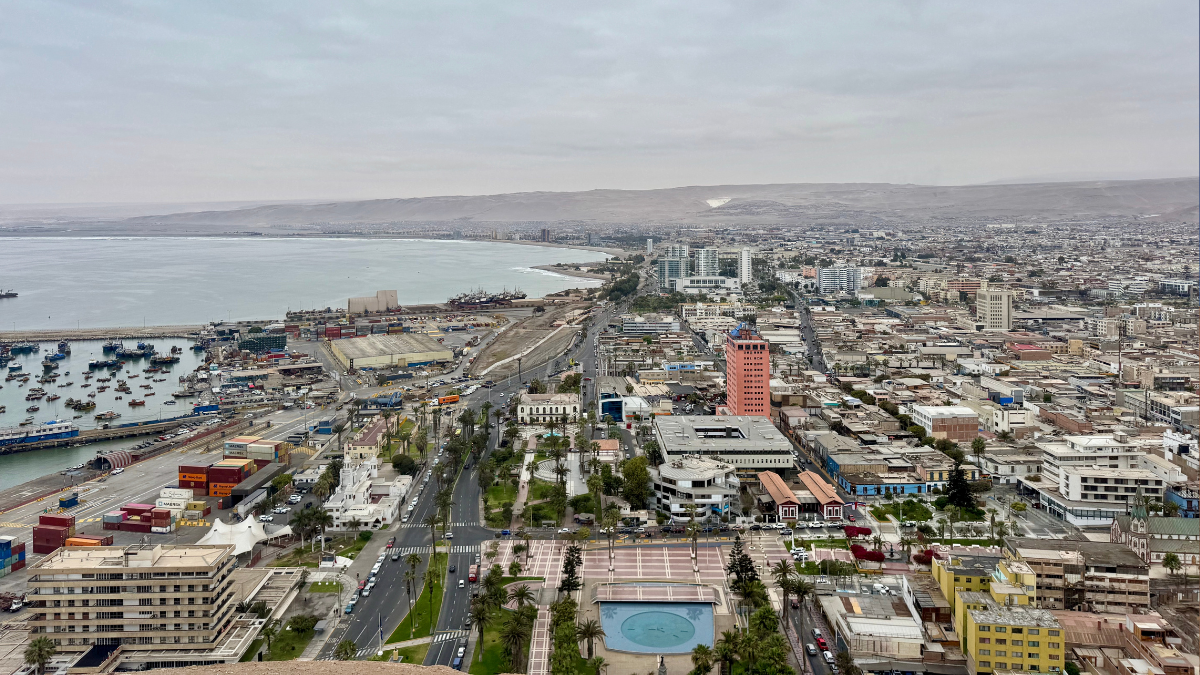 “It never rains here,” says Santiago, as we stand on a clifftop overlooking the city which appears largely colourless save for a few palm trees.